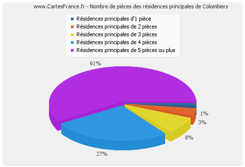 Nombre de pièces des résidences principales de Colombiers en 2007 :