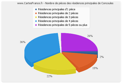 Nombre de pièces des résidences principales de Concoules en 2007 :