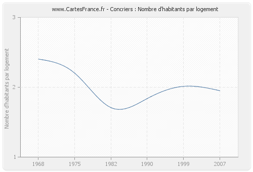 Le Village de Concriers avait en 2007 une moyenne de 1,95 habitants par logement.
