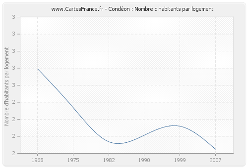 - Nombre d'habitants moyen par logement de Condéon en 1968 : 2,66