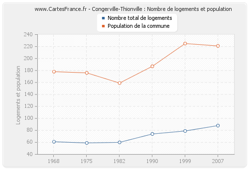 - Population de Congerville-Thionville en 2007 : 221 habitants