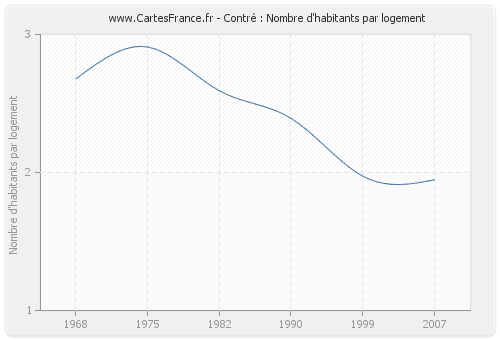 - Nombre d'habitants moyen par logement de Contré en 2007 : 1,95