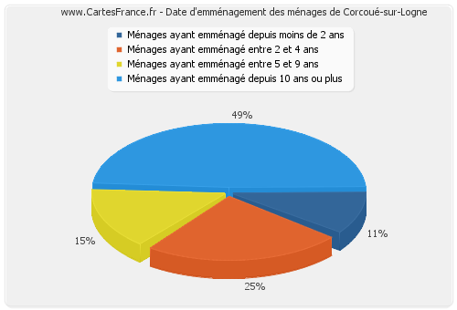 - Nombre de ménages de Corcoué-sur-Logne ayant emménagé depuis 10 ans ou plus : 445