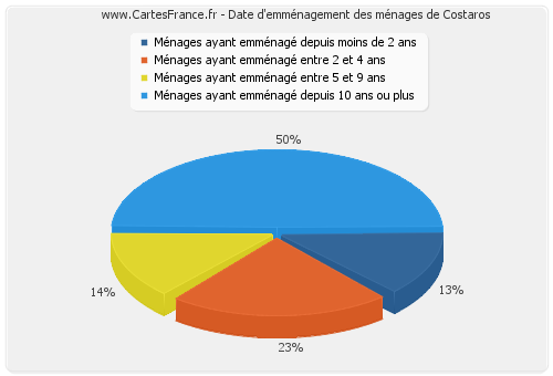 - Nombre de ménages de Costaros ayant emménagé depuis moins de 2 ans : 34