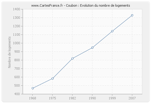 Historique du nombre de logements de Coubon de 1968 à 2007 :