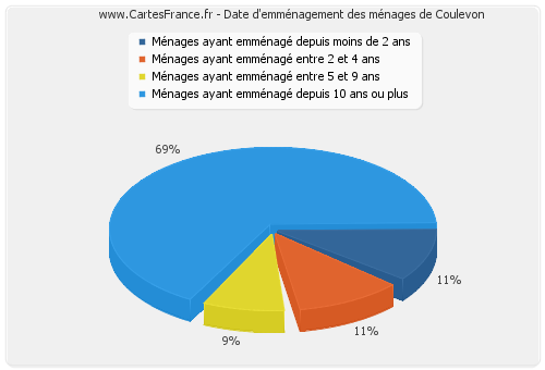 - Nombre de ménages de Coulevon ayant emménagé depuis moins de 2 ans : 9