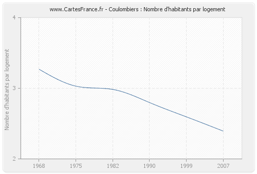 - Nombre d'habitants moyen par logement de Coulombiers en 1968 : 3,27