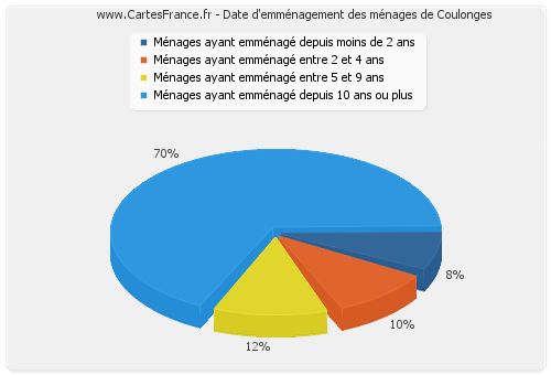 - Nombre de ménages de Coulonges ayant emménagé depuis moins de 2 ans : 10