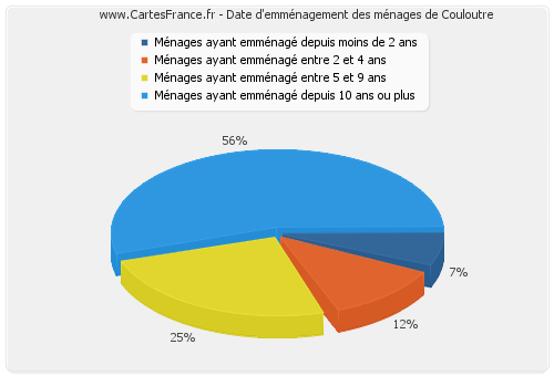 - Nombre de ménages de Couloutre ayant emménagé depuis 10 ans ou plus : 66