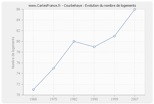 Historique du nombre de logements de Courbehaye de 1968 à 2007 :