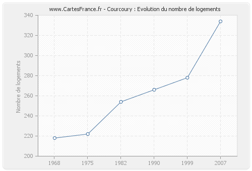 Historique du nombre de logements de Courcoury de 1968 à 2007 :