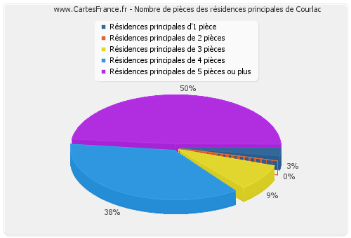 - Nombre de résidences principales de Courlac de trois pièces : 3