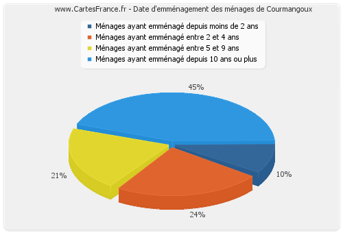 - Nombre de ménages de Courmangoux ayant emménagé depuis 10 ans ou plus : 92