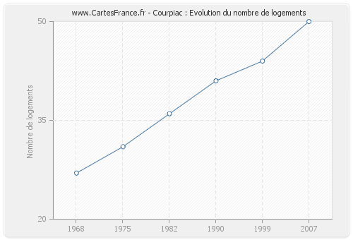 Historique du nombre de logements de Courpiac de 1968 à 2007 :