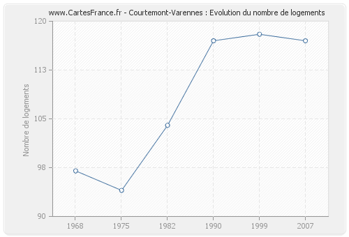 Historique du nombre de logements de Courtemont-Varennes de 1968 à 2007 :