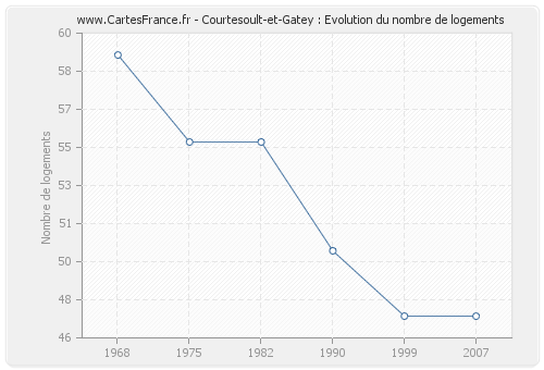 Historique du nombre de logements de Courtesoult-et-Gatey de 1968 à 2007 :