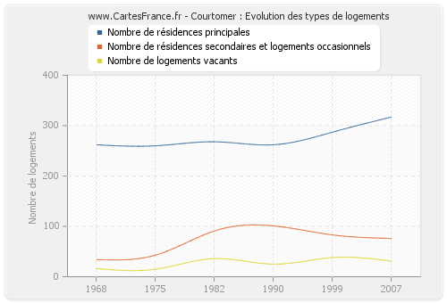- Nombre de résidences principales de Courtomer en 2007 : 317