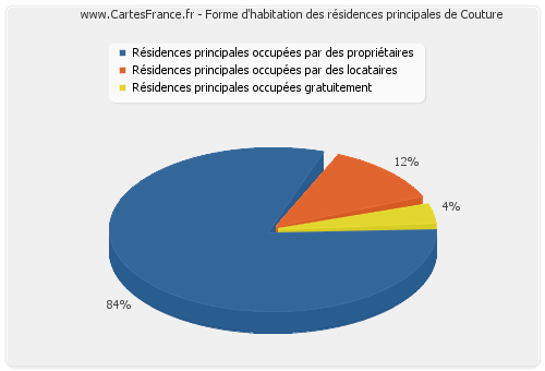 - Nombre de résidences principales de Couture occupées gratuitement : 3