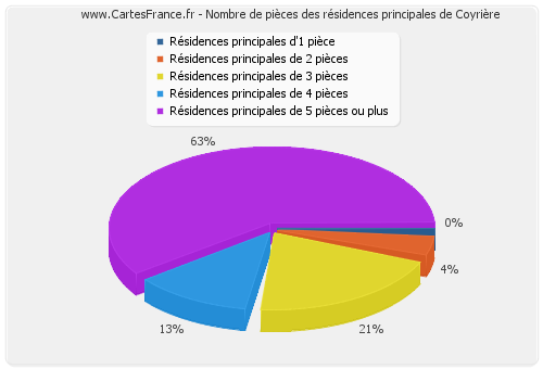 - Nombre de résidences principales de Coyrière de cinq pièces et plus : 15