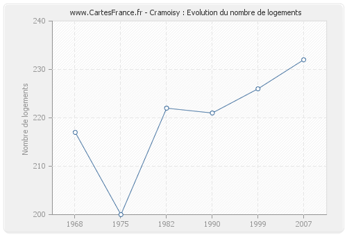 Historique du nombre de logements de Cramoisy de 1968 à 2007 :