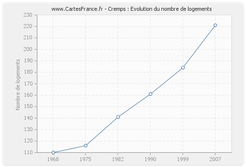 Historique du nombre de logements de Cremps de 1968 à 2007 :