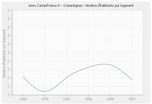 - Nombre d'habitants moyen par logement de Crésantignes en 2007 : 2,18