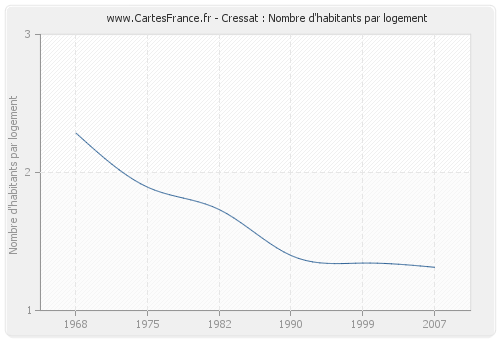 - Nombre d'habitants moyen par logement de Cressat en 2007 : 1,31