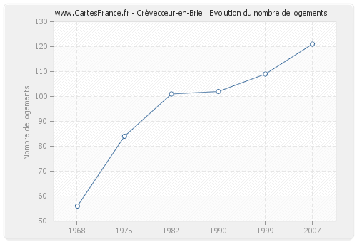 Historique du nombre de logements de Crèvecœur-en-Brie de 1968 à 2007 :