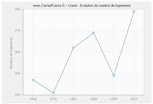 Historique du nombre de logements de Crissé de 1968 à 2007 :