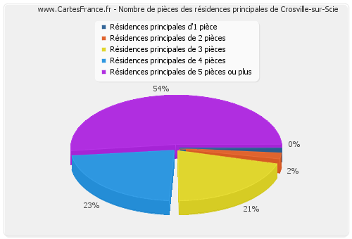 - Nombre de résidences principales de Crosville-sur-Scie de cinq pièces et plus : 53