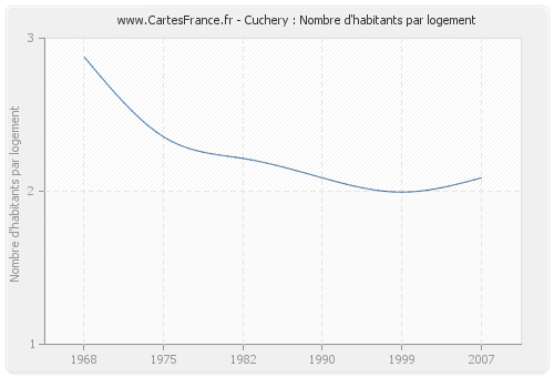 - Nombre d'habitants moyen par logement de Cuchery en 2007 : 2,09