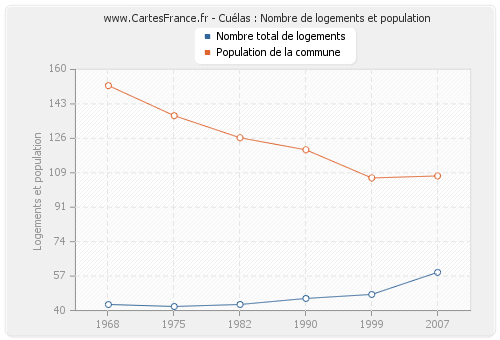 Historique du nombre de logements de Cuélas de 1968 à 2007 :