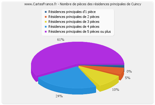 - Nombre de résidences principales de Cuincy de cinq pièces et plus : 1 595