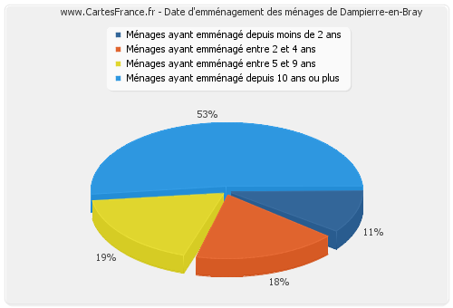 - Nombre de ménages de Dampierre-en-Bray ayant emménagé depuis 10 ans ou plus : 88