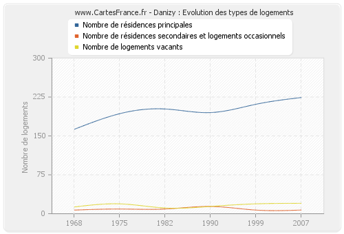 - Nombre de résidences principales de Danizy en 2007 : 224