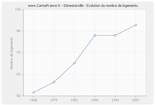 Historique du nombre de logements de Dénestanville de 1968 à 2007 :