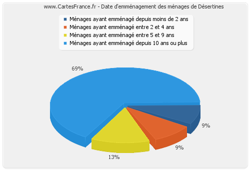 - Nombre de ménages de Désertines ayant emménagé depuis 10 ans ou plus : 149
