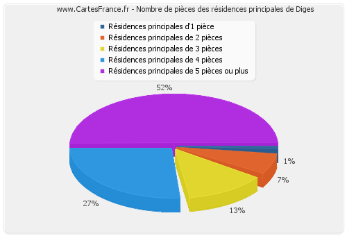 Nombre de pièces des résidences principales de Diges en 2007 :