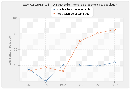 - Logements de Dimancheville en 2007 : 65