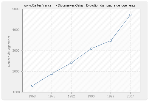 Historique du nombre de logements de Divonne-les-Bains de 1968 à 2007 :