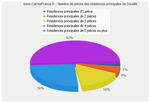 Nombre de pièces des résidences principales de Douelle en 2007 :