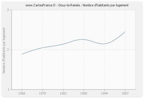 - Nombre d'habitants moyen par logement de Douy-la-Ramée en 1968 : 1,89