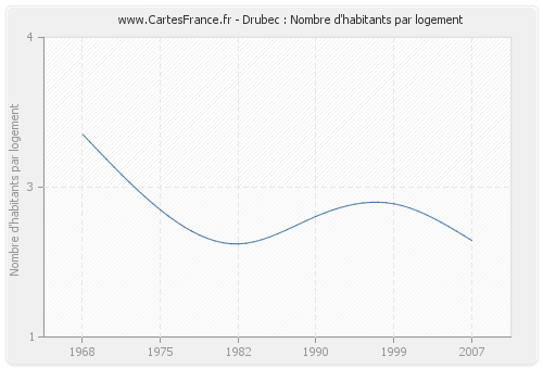 - Nombre d'habitants moyen par logement de Drubec en 2007 : 1,96