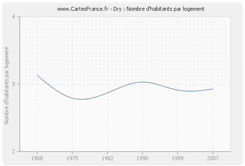 - Nombre d'habitants moyen par logement de Dry en 2007 : 2,93