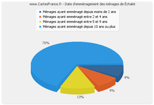 - Nombre de ménages d'Échalot ayant emménagé depuis 10 ans ou plus : 33