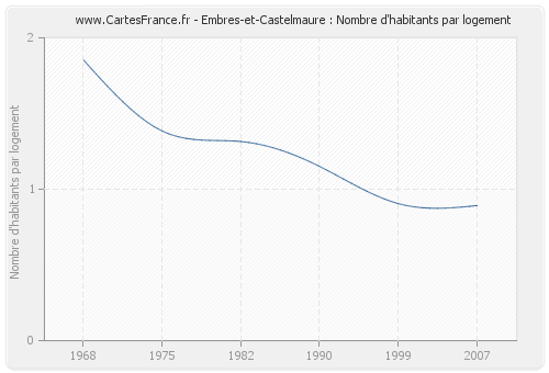 - Nombre d'habitants moyen par logement d'Embres-et-Castelmaure en 1968 : 1,85
