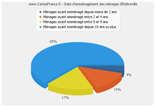 - Nombre de ménages d'Embreville ayant emménagé depuis 10 ans ou plus : 147