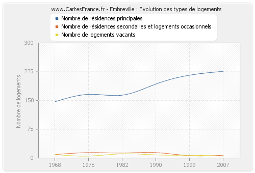 - Nombre de résidences principales d'Embreville en 2007 : 226