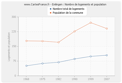 Historique du nombre de logements d'Emlingen de 1968 à 2007 :