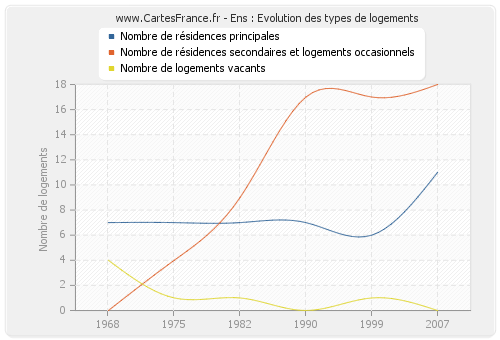- Nombre de résidences secondaires d'Ens en 2007 : 18